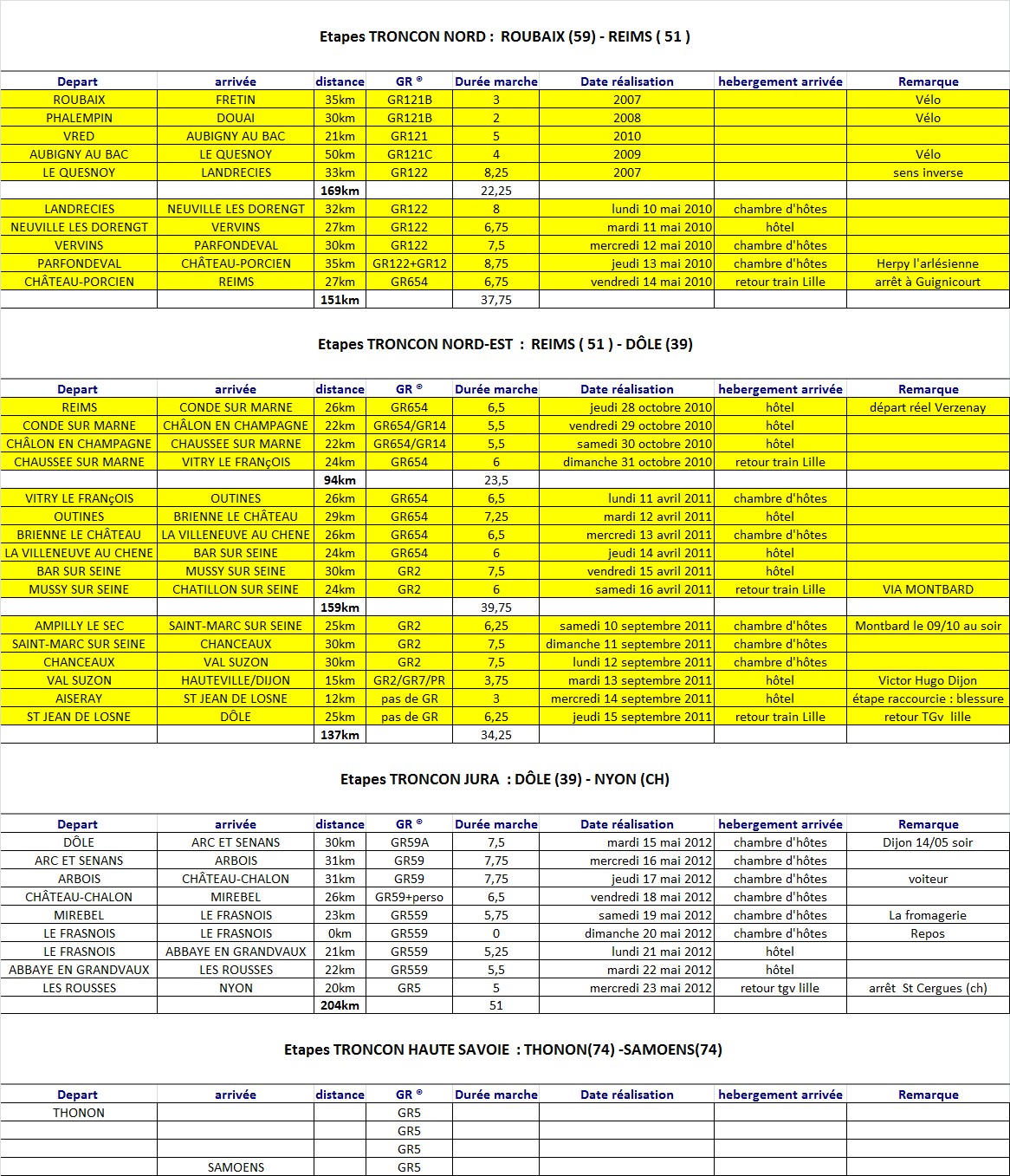 En jaune , les étapes déjà réalisées  ; en blanc le prochain tronçon à venir !